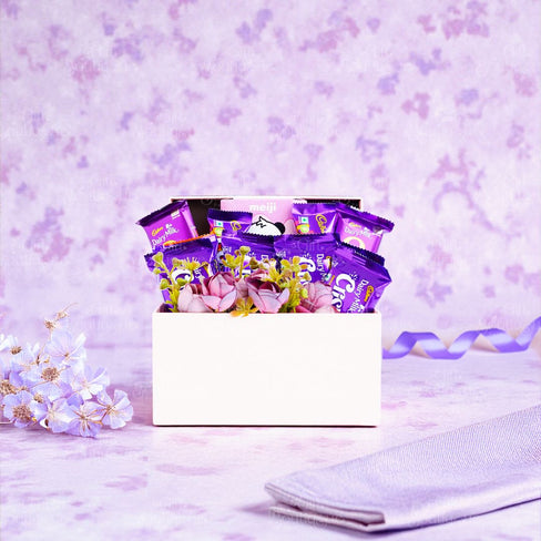 A delightful chocolate gift box featuring Hello Panda, Crispello, Fuse, DM Silk, and DM Silk Bubbly. Packed with popular, indulgent treats, this hamper is perfect for chocolate lovers of all ages. Beautifully arranged for a premium look, it makes gifting easy and joyful. Ideal for celebrations, special occasions, or sweet surprises, this chocolate combo delivers rich flavors, fun bites, and pure happiness in every box.