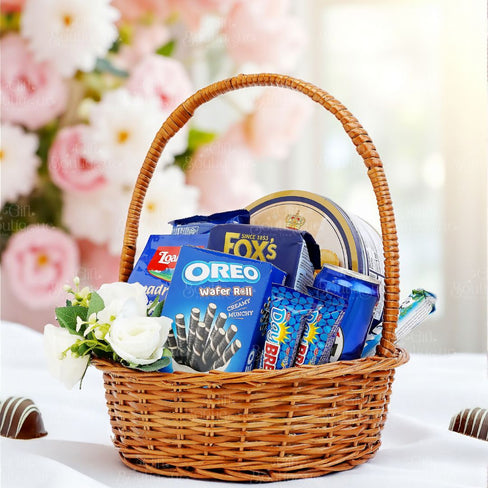 Treat yourself or your loved ones to the Delightful Indulgence Box, a premium selection of sweet and crunchy delights. This curated assortment features classic cookies, luscious chocolates, signature wafers, and a refreshing beverage, all carefully chosen for taste and quality. Perfectly packaged, it offers a luxurious snacking experience that delights every palate. Whether for gifting or personal enjoyment, this box brings joy, indulgence, and a touch of elegance to every occasion, making every moment memorable.