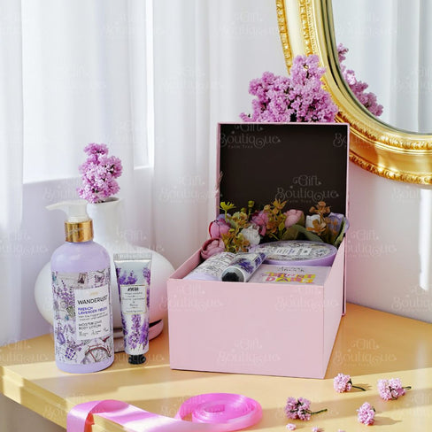 A luxurious self-care hamper designed to pamper and refresh. Curated with nourishing body care essentials and a captivating fragrance, this collection offers a soothing, feel-good experience. From deeply hydrating textures to a delightful scent, each element adds comfort and indulgence, making it a perfect treat for everyday relaxation or special moments of self-love.