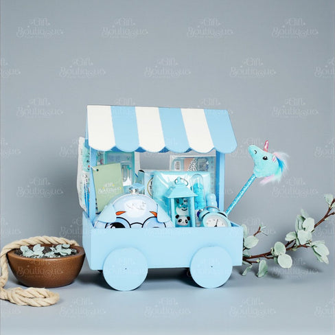 A cute and practical mini gift hamper filled with playful stationery, sweet treats, and handy everyday essentials, designed to brighten daily routines with charm and fun. It includes Panda Light Keychain, mini alarm, paper soap, highlighter pen, unicorn pen, marshmallow pop, Bounty chocolate, fuzzy note, butterfly pen, coin box, sticky note, Dear Teddy Biscuit, baby pouch, HM Choco Balls, and mixed chocolate. Perfect for kids, teens, students, office desk buddies, party favors, or anyone who loves a mix of cuteness, convenience, and chocolates in one delightful package.